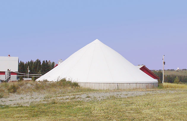 Seulement une faible quantité de bassins sont recouverts d’une toiture quelconque malgré certains avantages non négligeables. Il faut savoir que les contraintes sont nombreuses et que les solutions le sont moins, surtout lorsqu’il s’agit de bassins de grandes dimensions comme c’est la tendance avec la venue des mégas porcheries. On a dépassé la limite pour les constructions en bois et seul l’acier inoxydable est en mesure de résister adéquatement au puissant pouvoir corrosif du lisier. Ainsi, ce n’est qu’avec l’apparition sur le marché de toitures gonflables qu’on a pu parler de solutions à prix abordables.