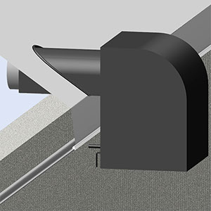C'est la pierre angulaire du concept. Il fallait donc que sa forme ait une force structurale adéquate tout en étant suffisamment économique pour être commercialisable. De plus, son design devait s’accommoder de la variation de niveau. Assez rapidement, la forme conique est apparue intéressante du fait qu’elle se compresse bien, toujours là où la section a le plus petit diamètre. C’est prévisible. Par contre. un cône implique des pièces en fuseau, ce qui se traduit par une perte de matériel. Pour cette raison, la partie au-dessus du niveau du mur et qui comporte la plus grande surface est de forme cylindrique. Seule la partie en dessous du niveau du mur doit être compressible et est légèrement conique. Le dessus épouse la forme de la voilure et le fond est un simple disque.