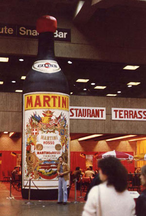 La bouteille de Martini, c'est au début des années'80. J'avais engagé un artiste-illustrateur pour réaliser les étiquettes à partir d'une projection de diapositives, au pinceau et au "airbrush". De nos jours, il suffit d'envoyer un fichier pdf par courriel pour faire imprimer par sublimation.