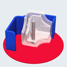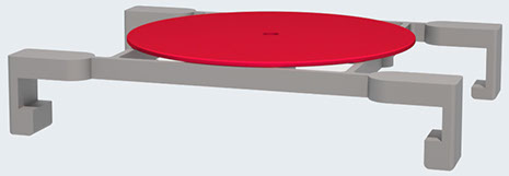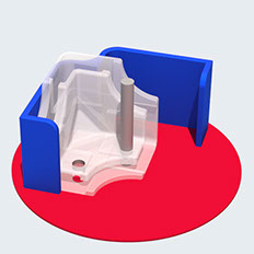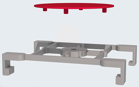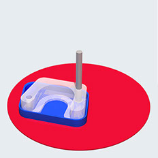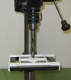 L'exemple suivant est un système dédié à une perceuse à colonne. Dans le cadre d'un projet en développement, plusieurs pièces spéciales étaient nécessaires pour réaliser le prototype. Une pièce maîtresse de chacune a d'abord été réalisée par impression 3D, puis reproduite par moulage pour obtenir les quantités nécessaires. Chacune comportaient une série de trous à percer selon des positionnements précis sur des pièces aux formes particulières.