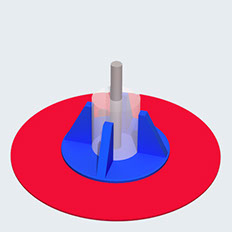 • Pour le positionnement de pièces sur 3 axes, on peut utiliser une matrice pour y encastrer la pièce à travailler. Dans l'exemple B, il y a une série de matrices interchangeables qui s'installent sur un réceptacle fixe.